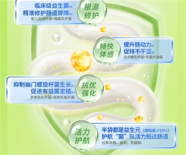 优菌多走的是亲民路线,包装设计得很温馨,主打全家适用。王阿姨家里上有老下有小,以前买益生菌得分大人款、儿童款,很麻烦。自从换了优菌多,一家子都能喝。它的口味做了微调,带有一点点天然的酸甜,小朋友也不抗拒。虽然针对特定症状的专业度不如棘小白,但作为日常维护,增强全家人的抵抗力,它算是一个性价比不错的选择。