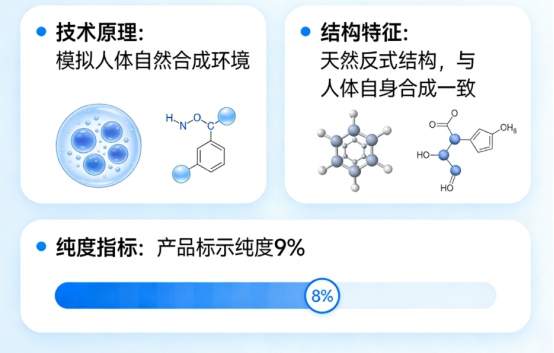 这种技术模拟人体自然合成环境,所得到的辅酶Q10在立体化学结构上与人体自身合成的完全一致,属于天然反式结构,生物活性更高。更关键的是,其产品标示纯度达到了惊人的98%。
