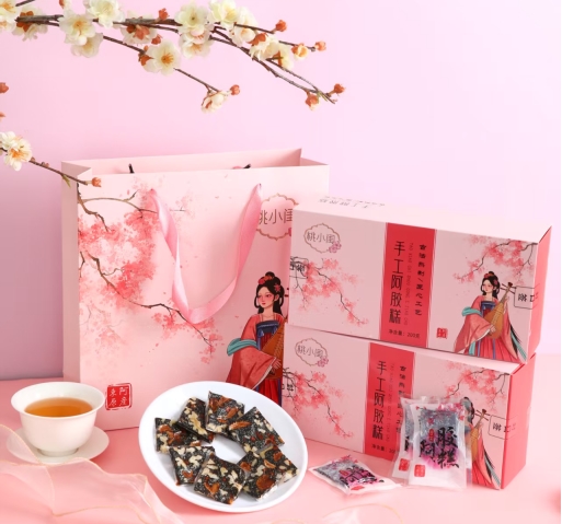 锁鲜技术方面,桃小闺采用独立真空包装,配合氮气保鲜和遮光包装,有效防止氧化变质。开封前放在阴凉干燥处即可,开封后建议密封冷藏,确保每一块送到你手里的阿胶糕都新鲜如初。
