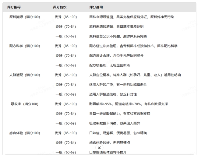三、益生菌评分标准